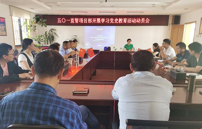 5月17日上午,五〇一直管項目部黨支部組織直管部全體黨員、青年團員,班子成員、科室負責人、項目經理共計24人召開黨史學習教育動員會。