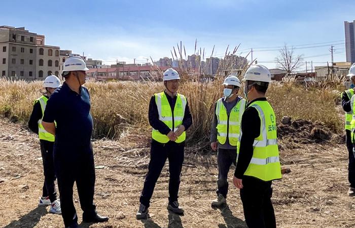 付雋蒼深入項目一線,認(rèn)真聽取了項目負(fù)責(zé)人對項目進(jìn)展情況的匯報。詳細(xì)了解項目圖紙設(shè)計進(jìn)度、施工現(xiàn)場平面布置、工程樁試樁施工準(zhǔn)備、安全管理、項目策劃計劃、疫情防控及值班值守等方面工作的開展情況以及下一步重點(diǎn)工作計劃。