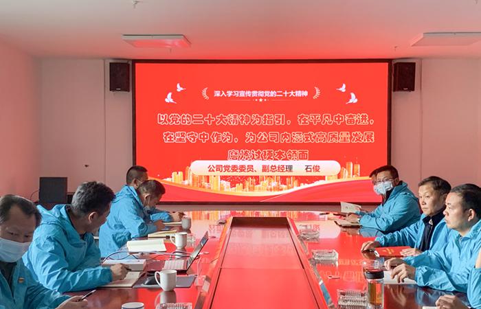 石俊強(qiáng)調(diào),認(rèn)真學(xué)習(xí)宣傳貫徹黨的二十大精神,是當(dāng)前和今后一個(gè)時(shí)期的頭等大事和首要政治任務(wù)。一要用黨的二十大精神武裝頭腦,讓黨的二十大精神成為全體黨員干部干事創(chuàng)業(yè)的思想武器、力量源泉和精神支柱。二要用黨的二十大精神凝魂聚力,按照公司黨委要求,有重點(diǎn)、分步驟、多層次開(kāi)展學(xué)習(xí)貫徹黨的二十大精神各項(xiàng)活動(dòng),迅速掀起學(xué)習(xí)貫徹工作熱潮,確保宣傳貫徹到黨員和干部職工心里。三要用黨的二十大精神推動(dòng)實(shí)現(xiàn)各項(xiàng)年度重點(diǎn)工作目標(biāo),科學(xué)謀劃新思路、新舉措、新方式,不折不扣貫徹落實(shí)好黨的二十大的“統(tǒng)籌發(fā)展和安全”的重要要求,以實(shí)干推動(dòng)年度目標(biāo)的實(shí)現(xiàn)。四要結(jié)合學(xué)習(xí)黨的二十大精神,緊緊圍繞事關(guān)項(xiàng)目一線生產(chǎn)、安全、技術(shù)、質(zhì)量等重難點(diǎn)問(wèn)題,開(kāi)展深入研究,統(tǒng)籌做好年關(guān)各項(xiàng)工作,確保取得實(shí)實(shí)在在的工作成效,以?xún)?yōu)異的工作成績(jī)助推公司內(nèi)涵式高質(zhì)量發(fā)展。