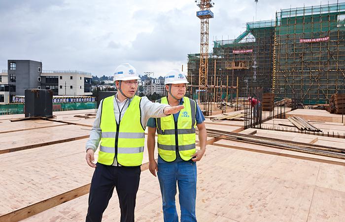 到達(dá)項(xiàng)目部后,付雋蒼深入施工現(xiàn)場(chǎng)實(shí)地檢查并詳細(xì)了解項(xiàng)目的資金、材料、安全質(zhì)量管理等方面的情況。