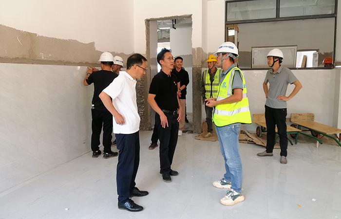 調(diào)研組到達(dá)項(xiàng)目施工現(xiàn)場(chǎng)后,詳細(xì)了解項(xiàng)目現(xiàn)階段工作開展情況,察看了綜合教學(xué)樓、男生宿舍樓、食堂報(bào)告廳的室內(nèi)裝修及門窗安裝情況,在聽取施工單位對(duì)項(xiàng)目剩余工作的匯報(bào)后,對(duì)下步工作做出詳細(xì)安排。