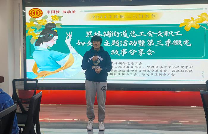 3月7日下午,公司女職工李明明受邀參加由黑林鋪街道總工會(huì)舉辦的“倡導(dǎo)好家風(fēng)、唱響勞動(dòng)美、巾幗展風(fēng)采,魅力綻芳華”為主題的三八國(guó)際婦女節(jié)暨第三季微光故事分享活動(dòng)。