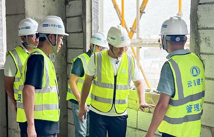 付雋蒼一行深入施工現(xiàn)場,細致查看了項目的施工進度、質(zhì)量、安全等實體狀況,詳細了解項目部的各項工作推進情況并提出指導(dǎo)意見。