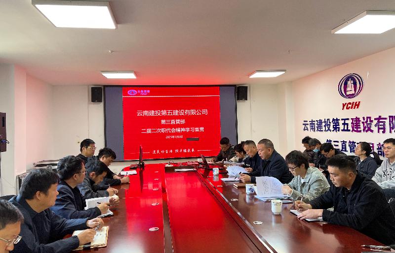 3月3日上午,第三直管部組織在昆班子成員和全體管理人員集中學(xué)習(xí)宣貫集團(tuán)和公司二屆二次職代會精神,共計(jì)27人參加。