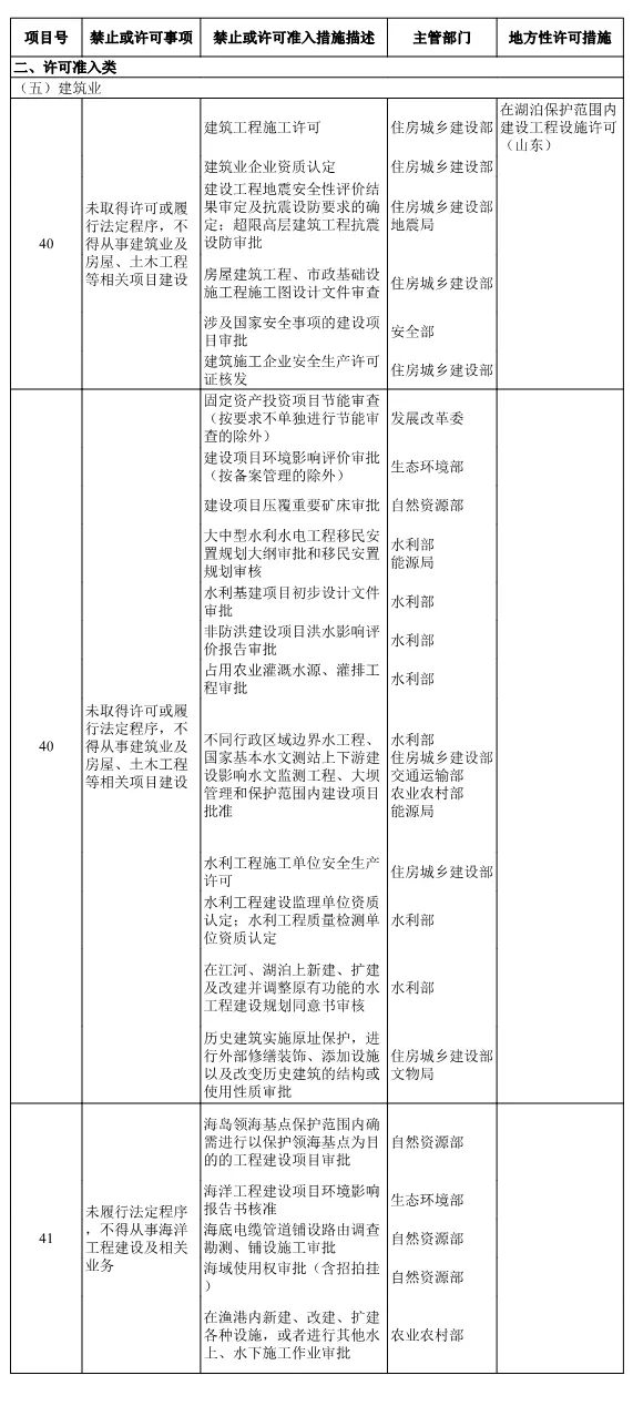 在2019版《市場準入負面清單》中,與建筑業(yè)相關(guān)的事項與規(guī)定有: