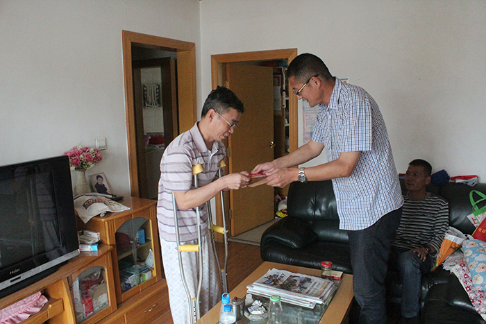 技術(shù)支持: 方森科技 2013年9月16日上午,公司第八直管項目部看望了因工傷在家休養(yǎng)的職工石亞南,了解了他的恢復情況,并為他送上節(jié)日的慰問。在中秋佳節(jié)到來之際,直八部考慮到石亞南雖然享受了工傷的優(yōu)惠政策,每月工資沒有受到影響,但他為恢復骨折而進行的治療費用金額較高,結(jié)合實際情況,直管部不僅為他送去了過節(jié)費,還送去500元的困難職工慰問金。