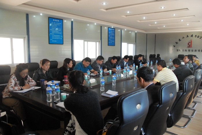 公司總經(jīng)理助理、五〇三直管部經(jīng)理楊林和陽光花園小區(qū)保障房項目經(jīng)理楊紹光向督導組匯報了項目推進的情況和目前亟待解決的問題,督導組領導分別從項目的主材供應、資金狀況、經(jīng)營管理、合同成本和安全質量等方面進行分析,針對目前遇到的問題給予了各自的意見和建議。