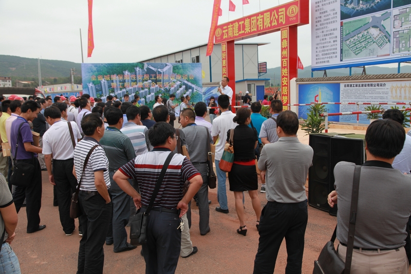 7月25日,云南省城鄉(xiāng)住建系統(tǒng)300多名領(lǐng)導(dǎo)干部到公司承建的楚雄2012年保障房項(xiàng)目——陽光花園小區(qū)參觀。公司總經(jīng)理魏華、副總經(jīng)理?xiàng)盍?、紀(jì)委書記吳倩陪同參觀。