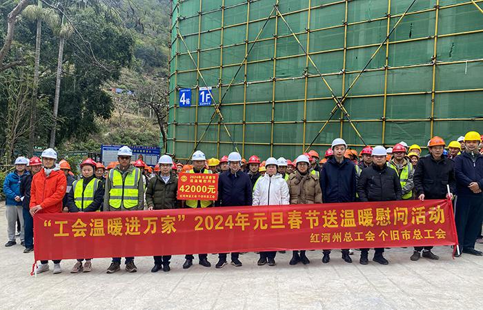 心系職工,情暖一線。1月23日,龍年新春佳節(jié)即將來(lái)臨之際,紅河州總工會(huì)黨組書記、常務(wù)副主席姜云,個(gè)舊市人大常委會(huì)副主任、市總工會(huì)主席許雪梅率慰問(wèn)組到公司第二直管項(xiàng)目部負(fù)責(zé)施工的個(gè)舊市工人療養(yǎng)院提升改造項(xiàng)目開展“工會(huì)溫暖進(jìn)萬(wàn)家”2024年元旦春節(jié)送溫暖慰問(wèn)活動(dòng)。慰問(wèn)組一行深入施工現(xiàn)場(chǎng),實(shí)地察看項(xiàng)目建設(shè)情況,與產(chǎn)業(yè)工人進(jìn)行親切交談,詳細(xì)了解他們的工作和生活情況。充分肯定了一線職工和產(chǎn)業(yè)工人為項(xiàng)目建設(shè)做…