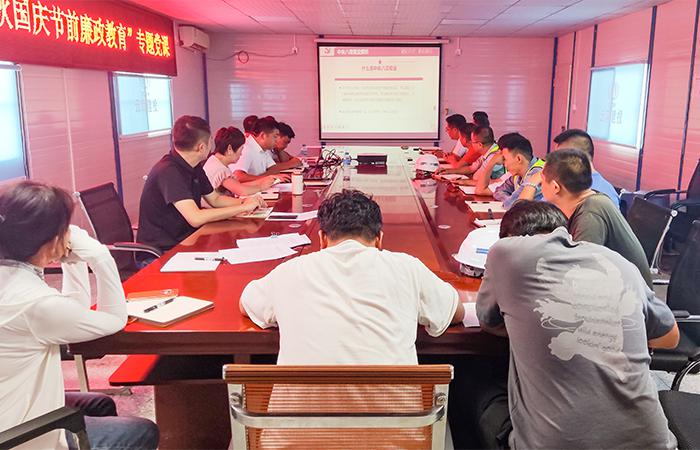 ? ? ? ?9月9日,第八直管部在文山職業(yè)技術(shù)學(xué)院產(chǎn)教融合訓(xùn)練基地項(xiàng)目部召開(kāi)“中央八項(xiàng)規(guī)定精神暨中秋國(guó)慶節(jié)前廉政教育”專(zhuān)題黨課,直管部領(lǐng)導(dǎo)班子成員、各項(xiàng)目經(jīng)理、各板塊負(fù)責(zé)人、文山職業(yè)技術(shù)學(xué)院項(xiàng)目全體管理人員共計(jì)18人參會(huì)。? ? ? ?此次專(zhuān)題黨課系統(tǒng)闡述了“中央八項(xiàng)規(guī)定”的具體內(nèi)容、“中央八項(xiàng)規(guī)定精神”的核心要義,并對(duì)兩者之間的區(qū)別進(jìn)行深入解讀,會(huì)上還對(duì)財(cái)務(wù)規(guī)范報(bào)銷(xiāo)進(jìn)行交底,對(duì)差旅費(fèi)報(bào)銷(xiāo)的要求…