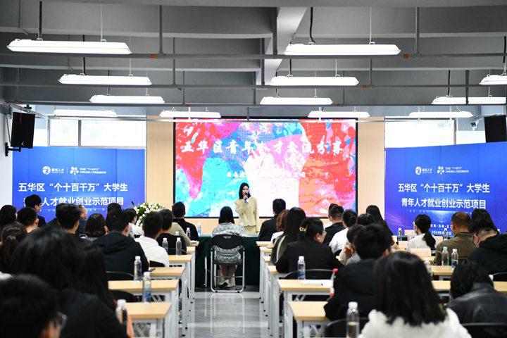 公司職工在五華區(qū)“個(gè)十百千萬”大學(xué)生青年人才就業(yè)創(chuàng)業(yè)示范項(xiàng)目發(fā)布會(huì)進(jìn)行宣講
