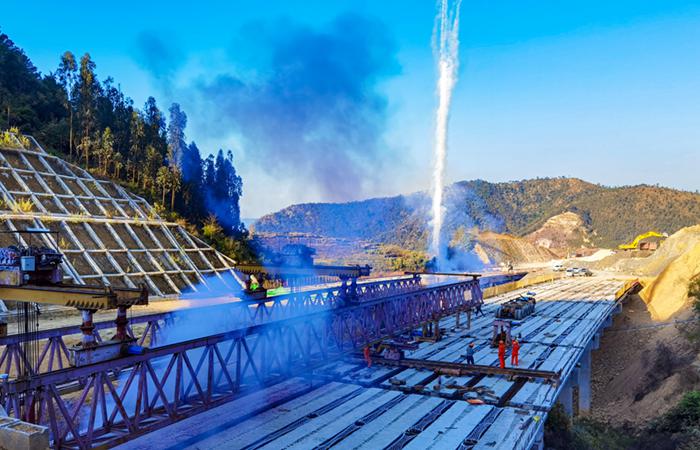 2月17日,隨著玉屏村1號(hào)大橋最后一片T梁吊裝成功,彌玉高速象山項(xiàng)目圓滿完成標(biāo)段內(nèi)T梁架設(shè)工作。彌玉高速象山試驗(yàn)段主線內(nèi)共設(shè)置6座大橋,橋梁梁板設(shè)計(jì)為18.5米~40米不等的T梁,共計(jì)266片。甸基壩1、2號(hào)大橋及玉屏村3號(hào)大橋完成T梁架設(shè)工作后,剩余玉屏村1、2號(hào)大橋98片T梁因中石油管道改遷問題,運(yùn)梁通道一直未能成型,導(dǎo)致T梁吊裝工作延后一年多才得以組織開展。施工條件達(dá)到后,項(xiàng)目領(lǐng)導(dǎo)加緊落實(shí)架…