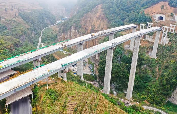 鎮(zhèn)果公路項(xiàng)目三分部五谷大橋鋼箱梁橋面板順利澆筑完成