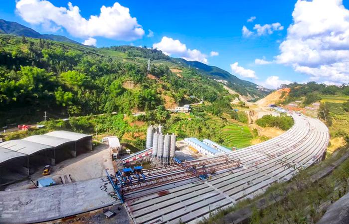 6月26日,在路橋五部負責施工的元綠高速七分部左幅阿德1號大橋施工現(xiàn)場,五聯(lián)現(xiàn)澆箱梁順利澆筑完成,標志著該項目橋梁主體工程進入了良好的沖刺階段。?元綠高速澤初立交區(qū)包含主線橋梁5座,橋梁全長左幅2034.66米、右幅2237.88米,設置匝道橋梁5座,橋梁全長1291.12米。其中,主線阿德1號大橋位于元陽至綠春高速公路澤初互通范圍內的主線橋梁,為雙幅橋梁,左幅全長612.4米,起點樁號為ZK35…