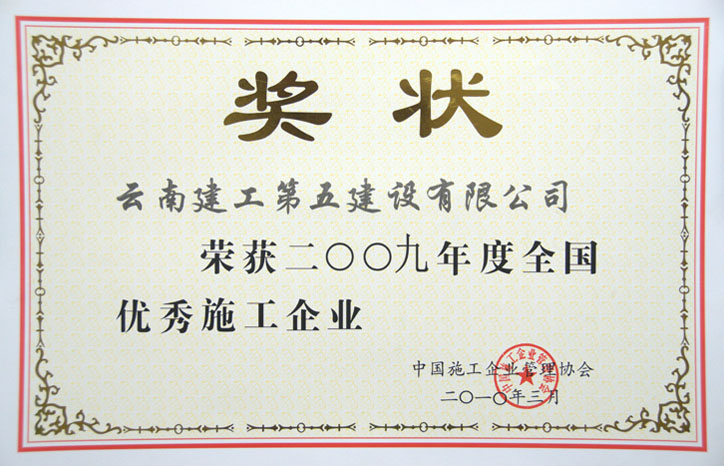 全國優(yōu)秀施工企業(yè) 獎狀